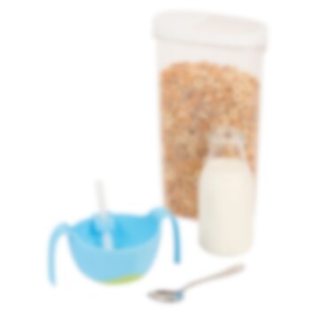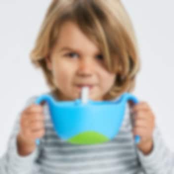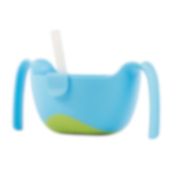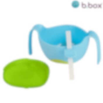 Prisbelönt och multifunktionell matskål med sugrör. B.box Bowl and Straw XL Ocean Breeze är en innovativ produkt som kan användas som en vanlig skål för matning med sked eller gaffel, men med det medföljande sugröret, som sätts fast på skålens kant, så kan barnet även dricka själv ur skålen (tex mjölk eller soppa). B.box "Bowl and Straw XL"har greppvänliga och rejäla handtag, anti-slip i botten och ett tätslutande lock.