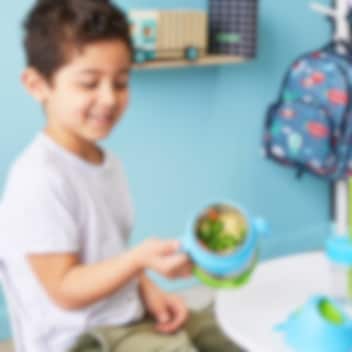 B.box Insulated Food Jar Blue Slate är en praktisk och varmhållande mattermos för barn med dubbla väggar tillverkad i livsmedelsgodkänt rostfritt stål som gör att maten håller sig varm i 5 timmar eller kall i upp till 7 timmar. Fyll mattermosen med varm mat, tex pasta och soppa, eller med kall mat som frukt och yoghurt och mata ditt barn när det blir hungrigt tex på flygplatser, på bussar, på restaurangen eller när du är hos släkt och vänner. Du slipper att leta grytor, mikrovågsugnar och spisar för att värma ditt barns mat.