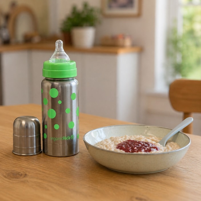 149 krRostfri nappflaska i metall - OrganicKidz Green Dots