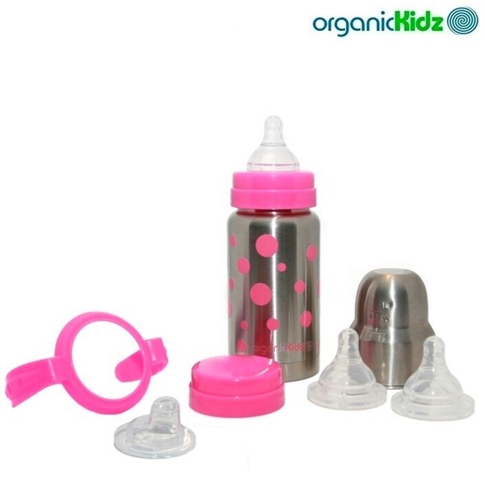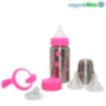 - Rostfri nappflaska i metall (set) - OrganicKidz Baby Grow Up Pink Dots