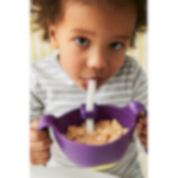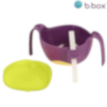 Prisbelönt och multifunktionell matskål med sugrör. B.box Bowl and Straw XL Passion Splash är en innovativ produkt som kan användas som en vanlig skål för matning med sked eller gaffel, men med det medföljande sugröret, som sätts fast på skålens kant, så kan barnet även dricka själv ur skålen (tex mjölk eller soppa). B.box "Bowl and Straw XL"har greppvänliga och rejäla handtag, anti-slip i botten och ett tätslutande lock.