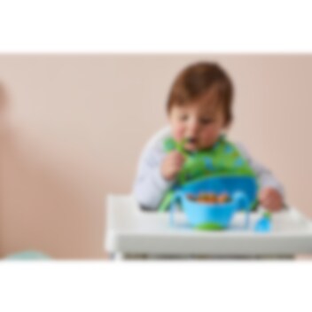 • Skålen är oval för bästa åtkomst för barnet