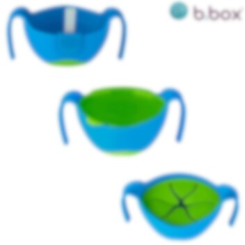 Prisbelönt och multifunktionell matskål med sugrör. B.box Bowl and Straw Ocean Breeze är en innovativ produkt som kan användas som en vanlig skål för matning med sked eller gaffel, men med det medföljande sugröret, som sätts fast på skålens kant, så kan barnet även dricka själv ur skålen (tex mjölk eller soppa). B.box Bowl and Straw kan även omvandlas till en snacksburk genom det praktiska locket som håller snacksen kvar i skålen även om den vänds uppochner. Skålen har greppvänliga och rejäla handtag, anti-slip i botten och ett tätslutande lock.