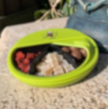 Innovativ och smart låda för snacks. Inuti Carl Oscar SnackDISC Lime Monkey finns en karusell med ett större och fyra mindre fack som kan laddas med olika snacks inför resan eller utflykten. Carl Oscar SnackDISC är gjord i BPA-fri och hållbar hårdplast i härliga färger. Snackslådan stängs genom att vrida locket som då även låses så att snacksen inte trillar ut. Lock, botten och snackskarusellen kan enkelt delas för rengöring och dels för att kunna placera karusellen direkt på bordet eller på picknickfilten. Carl Oscar SnackDISC är perfekt på flyget, bussen, tåget eller i bilen men även på utflykt med skola eller dagis. Ladda en SnackDISC med tex bär, nötter eller frukt- och grönsaksbitar.