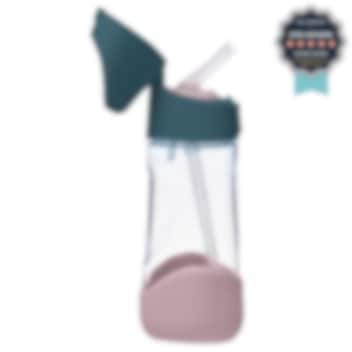 B.box Tritan Water Bottle Indigo Rose är en funktionell och tålig vattenflaska och dricksflaska för barn. Vattenflaskan är gjord i hållbar och giftfri Tritan som inte avger doft eller smak och är helt BPA-fri. B.box Tritan har en unik trekantig och ergonomisk form för bästa grepp i barnets händer. Sugröret är gjort i silikon och är läckage- och spillsäker. Vattenflaskan, som rymmer 450 ml, stängs med ett lock som skyddar det avtagbara sugröret från smuts och att vätskan läcker ut. Locket är enkelt att öppna för barnet tack vare en rejäl knapp. Flaskan har ett praktiskt bärhandtag och avtagbart stötskydd i bottnen på flaskan.