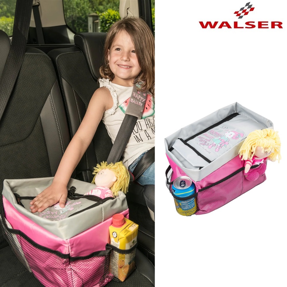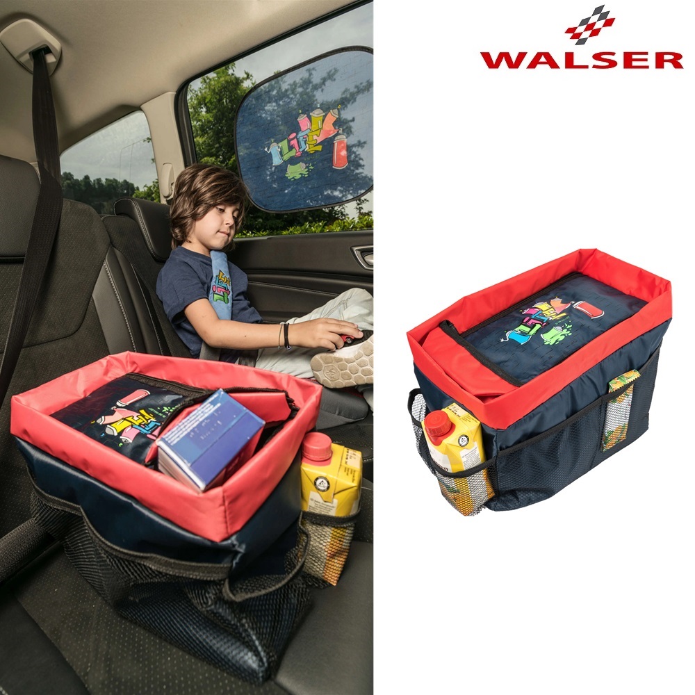Detta är en praktisk och funktionell prylhållare till bilens baksäte. Walser Backseat Organizer passar att användas i mitten på baksätet (även mellan två bilbarnstolar) och fästs med en krok i mittsätets bilbälte, så att den står stadigt. Prylhållaren har ett rejält och stängbart huvudfack samt fickor på utsidan med plats för lite mindre saker och tex vattenflaskor. Walser Backseat Organizer är ihopvikbar, och kan enkelt förvaras platt i bilen när den inte används.
