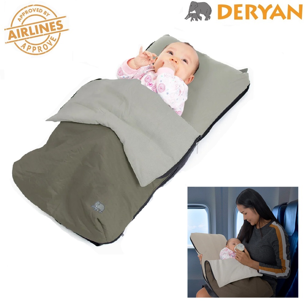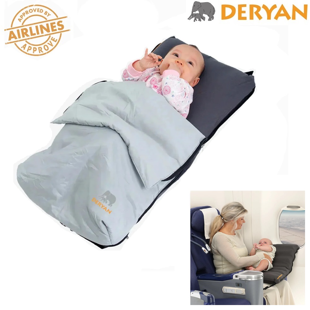 Deryan Airtraveller en uppblåsbar madrass med avtagbart täcke som fästs med blixtlås runt om. Madrassen kan både användas horisontellt som liggmadrass och som stol. Airtraveller ger skön avlastning för föräldern under flygresan. Läs mer om Airtraveller.