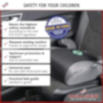 Walser Raffi Grey är en praktisk och trafikgodkänd (ECE R 129) bälteskudde för barn mellan 125 och 150 cm. Bälteskudden som ska användas framåtvänd är universal och passar i alla bilar med tre-punkts säkerhetsbälte och kan användas på alla platser i bilen (fram och bak). Walser Raffi är lätt (1,24 kg) och tar liten plats. Därigenom så kan den även enkelt tas med och användas tex i hyrbilen eller när ditt barn ska åka med farmor och farfar eller i kompisens bil. Bälteskudden är vadderad för hög komfort och klädseln är avtagbar och kan tvättas enligt anvisningarna på skötseletiketten.