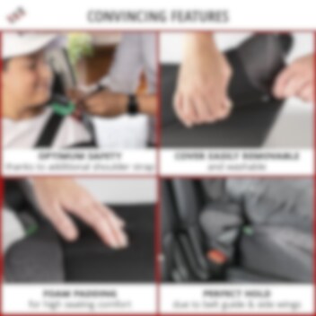 Använd i egna bilen, hyrbilen på resan, i farmor och farfars bil, som extra bälteskudde till barnens vänner eller när ditt barn ska åka med i kompisens bil.