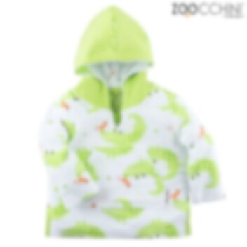 Zoocchini Alligator är en skön och mysig badponcho för barn och baby gjord i gullig design. Perfekt för barnet att värma sig i efter badet och som skydd mot solens UV-strålar. Ponchon har långa ärmar, värmande fickor på framsidan och är gjord i mjuk och värmande frotté med en generös huva i bomullsjersey. En badponcho är perfekt efter badet på badsemestern, på hemmastranden eller efter badet i badkaret.