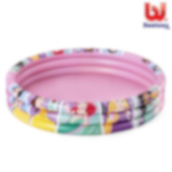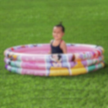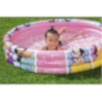 Härlig uppblåsbar barnbassäng för bus och bad under varma och soliga dagar i trädgården eller på semesterresan. Bestway barnpool Disney Princesses har tre separata luftkammare med säkerhetsventiler och är 122 cm i diameter. När luften tagits ut och poolen vikts ihop, så blir den så liten att den till och med kan få följa med i resväskan till solsemestern.