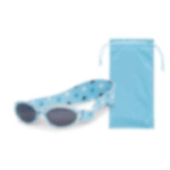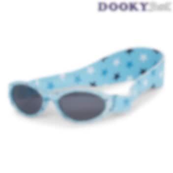 DookyBanz Blue Stars är ett par slitstarka och tåliga solglasögon för bebis med 100 % skydd mot UV-A och UV-B (certifierade enligt UV-skydd 400). DookyBanz är speciellt utformade för att passa ansiktet på små barn, vilket både ger maximal bekvämlighet och fullt uv-skydd för ögonen. Solglasögonen har ett mjukt och reglerbart nackband, så att solglasögonen sitter stadigt och blir kvar på barnets huvud.