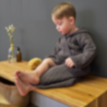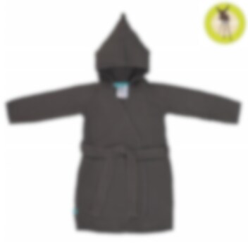 Härligt skön och mjuk badrock till barn i fin design. Lässig Muslin Antracite (grå) badrock är gjord i dubbelt lager av förtvättad mjuk muslin bomull. Materialet i badrocken "andas" och är skönt mot barnets hud. Badrockens huva skyddar mot drag och kyla efter badet och det insydda bältet ger bra passform och håller ihop badrocken. Lässig Muslin är maskintvättbar i 40 grader och blir mjukare efter varje tvätt.
