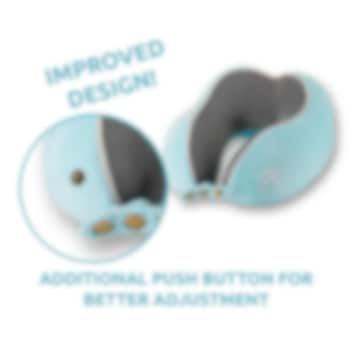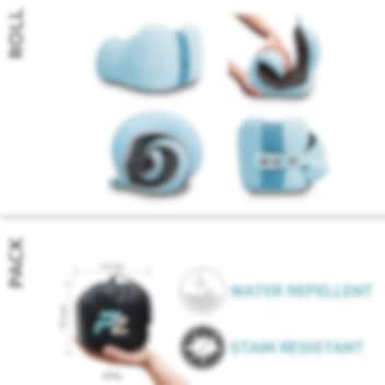 Den innovativa och bekväma nackkudden Comfy Kids Blue Medium från Flowzoom är en perfekt följeslagare till ditt barn på flyget, på tåget, på bussen eller i bilen. Nackkudden är ergonomisk utformad och gjord i en storlek som passar ett barns storlek på huvud och nacke. Comfy Kids är gjord i skönt "Breath-Easy" material, som minskar risken att det blir för varmt runt nackkudden. Den har dessutom en fyllning av minnesskum, gjort av antibakteriell viskos, som gör att kudden formas efter barnets huvud och minkar risken att kudden trycker fram barnets huvud när det lutar sig bakåt. På framsidan har nackkudden en tryckknapp så att kudden kan stängas och anpassas i tre olika storlekar. Efter användning så rullas Comfy Kids nackkudde ihop och packas i den medföljande påsen. I packat skick blir kudden 15 x 14 cm och därför enkel att ta med tex i handbagaget.
