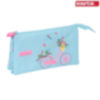 En praktisk och rymlig necessär är perfekt för ditt barn att ta med på resan eller för övernattning hos släkt eller vänner. Barnnecessären Bicicleta har totalt tre fack, två större och ett mindre i mitten, som rymmer det mesta som ska med, som tandborste, tandkräm, hårborste och kam. Necessären stängs med blixtlås och är gjord i vattenavstötande material i stilfull design. Förutom att användas som necessär, så fungerar Bicicleta även som pennskrin och prylväska.