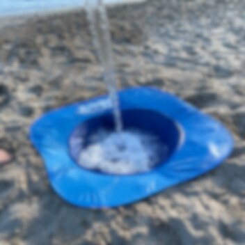 Swimpy Blue är en smart och rolig plaskpool till barn som är ihopvikbar och blir liten och därför enkel att ta med till stranden och på resan. Vid användning av poolen så gräver man en grop i sanden och därefter läggs poolen ovanpå och fylls med vatten. Poolen är 82 x 82 cm och väger bara ca 150 gram.