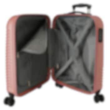 Roll Road India Pink är en stilren och tålig resväska som passar perfekt för lite större barn och ungdomar som vill resa både praktiskt och snyggt. Den moderna designen i kombination med slitstark ABS-plast gör väskan motståndskraftig mot stötar samtidigt som den är lätt att rulla och hantera. Med sina mått på 55 x 40 x 20 cm uppfyller väskan IATAs generella riktlinjer för handbagage och fungerar därför utmärkt som kabinväska hos många flygbolag. De fyra tystgående hjulen med 360°-rotation ger smidig manövrering genom terminaler och hotellmiljöer. Teleskophandtaget har två höjdlägen och kompletteras av ett praktiskt bärhandtag för flexibel transport. Invändigt är väskan klädd och välorganiserad med smarta fack: ena sidan är utrustad med spännband, medan den andra sidan har både spännband och ett skyddande blixtlåsfack som håller packningen på plats. Det integrerade kodlåset ger extra trygghet under resan.