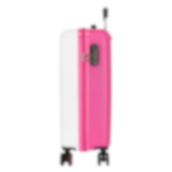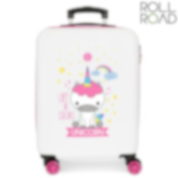 Barnresväskan Roll Road Little Me Unicorn är en fin, funktionell och stabil resväska gjord i hållbar formplast (ABS) med teleskophandtag och fyra tystgående hjul. Hjulen är svängbara i 360 grader vilket ger maximal manövrering när väskan ska flyttas, tex mellan gater på flygplatsen. Resväskan har 32 liters packutrymme och har en klädd insida med en sida med spännband och en sida som stängs med blixtlås, vilket gör att sakerna ligger ordnat under resan. Yttermåtten (55 x 34 x 20 cm) faller inom IATAs rekommenderade mått för handbagage (kolla med ditt flygbolag vad som gäller hos dem).