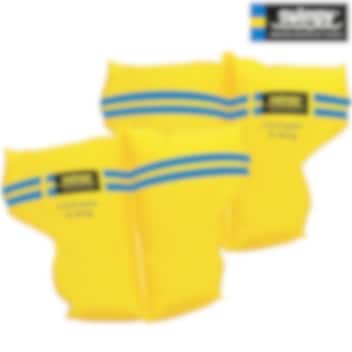 Swimpy Neutral (large) armringar till barn 2-6 år. Armringarna är gjorda i högsta kvalitet med dubbla luftkammare och säkerhetsventiler och i klar gul färg för maximal synlighet. Swimpy armpuffar har en utformning som ger barnet rörelsefrihet och komfort när det ska lära sig att simma. Armringarna kan användas både i havet och i poolen.