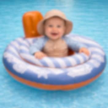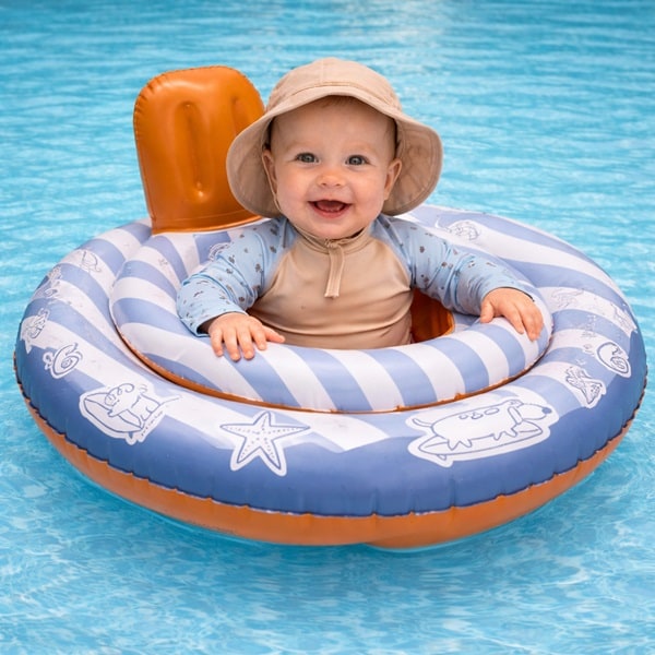 Swim Essentials Baby Float Surfer är en stabil och funktionell badring och badstol till baby. Badstolen är 69 cm i diameter och är tänkt för barn 11-15 kg (1-2 år). För högsta säkerhet så har Swim Essentials baby badring fyra separata luftkamrar med säkerhetsventiler och är säkerhetstestad enligt EUs normer (se standard nedan). Badstolen har två hål i bottnen, så att barnets ben kan hänga fritt.