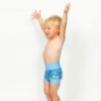 SplashAbout Happy Nappy Crocodile Swamp är en innovativ och återanvändbar badblöja och badbyxa för baby som förhindrar pinsamma och ohygieniska läckage och missöden i poolen. Happy Nappy badblöja är utvecklad tillsammans med simlärare i Storbritannien och gjord i ergonomisk form som följer barnets kropp. SplashAbout Happy Nappy har stretch runt midjan och låren för att förhindra läckage. Badblöjan är tillverkad i 1 mm tjock neopren som är smidig och skonsam mot barnets hud. Materialet är klorbeständigt, så att badblöjan inte förlorar sin form eller skyddande elasticitet när den används om och om igen.