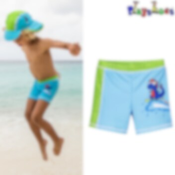 Tuffa och bekväma badbyxor för barn med högt UV-skydd (SPF 50+). Playshoes badbyxor Dino (long) har lite längre ben, bra passform med elastisk linning och normal livhöjd. Badbyxorna är snabbtorkande och gjorda i Oeko-Tex certificierat material. Playshoes badbyxor för barn går lika bra att använda i poolen som i havet.