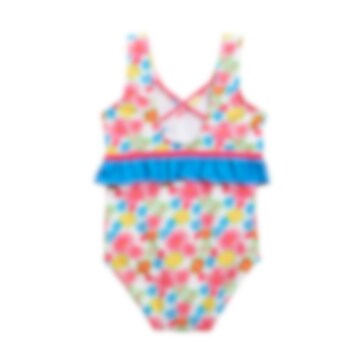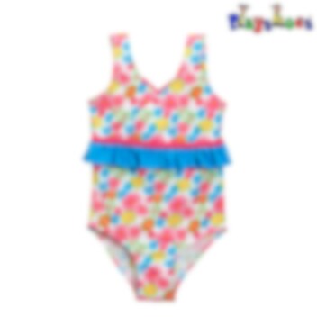 Playshoes Flowers Allover är en söt och bekväm baddräkt för barn med UV-skydd (SPF 50+). Baddräkten har bra passform med breda axelband och elastisk linning. Baddräkten torkar snabbt och är gjord i Oeko-Tex certificerat material. Playshoes baddräkt för barn går lika bra att använda i poolen som i havet.