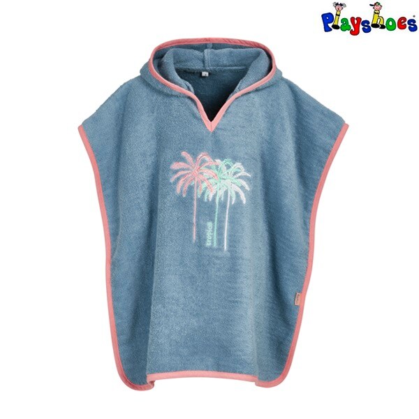 Härligt mysig badponcho för barn och baby gjord i fin design för barn att värma sig i efter badet. Ponchon Playshoes Palm Trees, är gjord i mjuk och värmande frotté och har en generös huva. En badponcho är perfekt efter badet på badsemestern, på hemmastranden eller efter badet i badkaret.