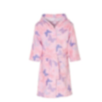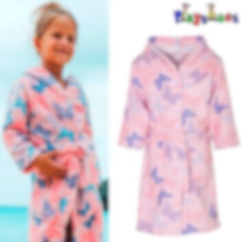Playshoes Butterfly är en härligt skön och mjuk badrock till barn i fin design. Badrocken är gjord i Oeko-Tex certifierat material (Standard 100). Badrocken har mysig huva som värmer skönt efter badet och har två fickor framtill, knapp upptill samt midjeskärp. Playshoes badrock passar perfekt efter badet i poolen, i havet eller i badkaret. Eftersom badrocken är gjord i lätt material så är den också enkel att ta med på semestern.