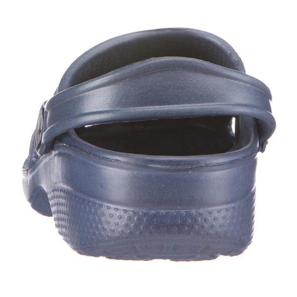 Ge ditt barn maximal komfort med ett par smidiga och funktionella badtofflor som passar lika bra för vardag som för semesterns alla äventyr. Playshoes Clogs Navy för barn är tillverkade i mjuk och flexibel EVA, vilket gör dem lätta att bära hela dagen – perfekt för lek hemma, vid poolen eller på stranden. Den formade och mjuka fotbädden ger ett behagligt stöd för små fötter, medan den elastiska remmen baktill säkerställer att tofflorna sitter stadigt på plats även under aktiv lek. Den öppna designen gör dem svala och enkla att ta på och av. EVA-materialet bidrar dessutom till en lätt och följsam känsla, vilket gör dessa badtofflor till ett självklart val under varma dagar.