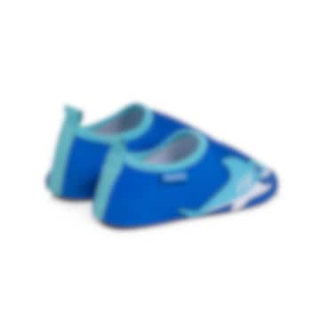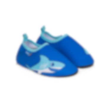 Playshoes Uni Shark är ett par sköna, lätta och skyddande UV badskor för barn med solskydd SPF 50+. Badskorna är gjorda i bekvämt och snabbtorkande material och hålls fast på foten med elastiskt resår runt foten. Skorna har en rejäl gummisula i TRP som skyddar barnets fot mot skarpa stenar och från het sand på stranden
