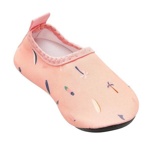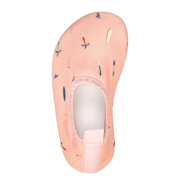 Playshoes Uni Surfboard Pink är ett par sköna, lätta och skyddande UV badskor för barn med solskydd SPF 50+. Badskorna är gjorda i bekvämt och snabbtorkande material och hålls fast på foten med elastiskt resår runt foten. Skorna har en rejäl gummisula i TRP som skyddar barnets fot mot skarpa stenar och från het sand på stranden.
