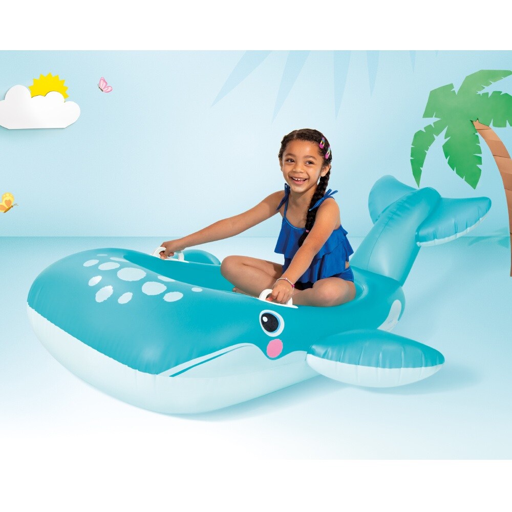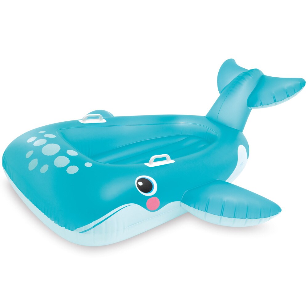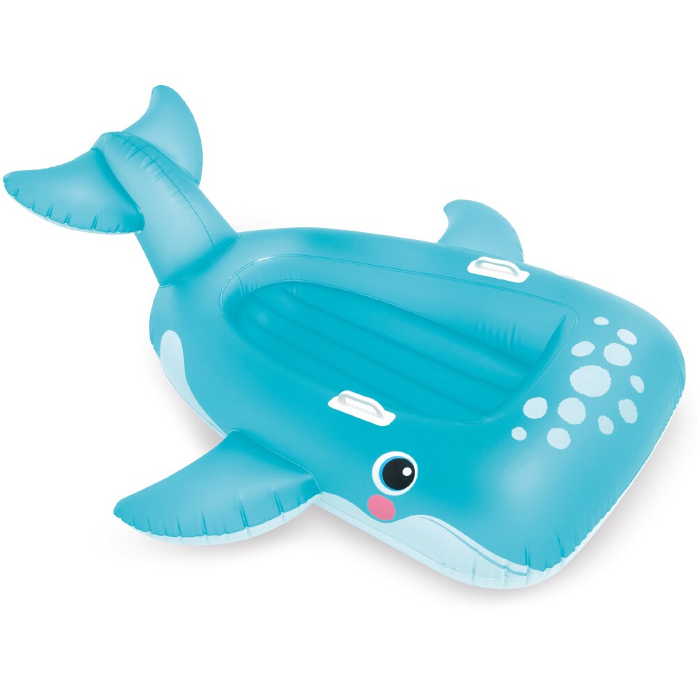 Intex Blue Whale XXL är ett härligt stort och uppblåsbart baddjur för lek och bus i pool och hav. Valen är väl tilltagen i storlek (168 x 140 cm) och är utrustad med praktiska handtag för barnet att hålla fast i. Intex uppblåsbara badleksaker är gjorda i hållbar och giftfri vinyl och är säkerhetstestade enlig EUs standard.