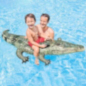 Intex Ride-on Alligator XL är en stor och uppblåsbar aligator gjord i fin och stabil design. Alligatorn är väl tilltagen i storlek (170 x 86 cm) och utrustad med ett praktiska handtag för barnet att hålla fast i. Den breda basen gör den stabil i vattnet. Intex Alligator XL är gjord i kraftig vinyl som är motståndskraftig både mot sol och saltvatten. Tänkt för barn från ca 3 år (upp till 40 kg).