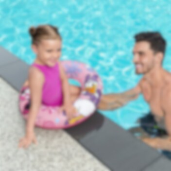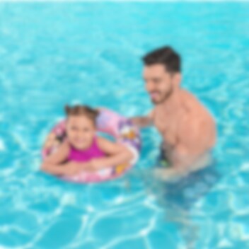 Uppblåsbar badring för barn gjord i söt Minnie Mousse design. Bestway badring är gjord i hållbart material och utrustad med säkerhetsventil. Badringen är 56 cm i diameter och är tänkt för barn i åldern 3-6 år. Perfekt att använda både i poolen och havet.