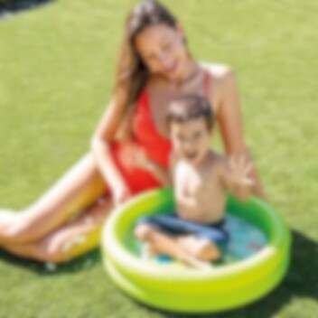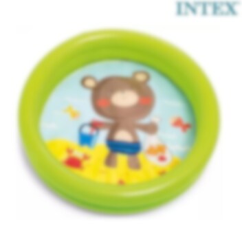 Intex nalle är en liten upblåsbar barnbassäng (plaskbassäng) för de allra yngsta barnen. Bassängen är 61 cm i diameter och poolkantens höjd är 15 cm. Ihoppackad är babypoolen liten och lätt och får plats i resväskan. Perfekt att plaska i på resan eller att använda på terassen när det är sol och varmt.