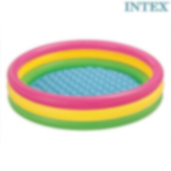 Intex Sunset Glow är en härlig uppblåsbar barnbassäng med plats för plask och vattenbus. Barnpoolen är 147 cm i diameter och har två separata luftkamrar med säkerhetsventiler, är säkerhetstestad och gjord i hållbar vinyl.