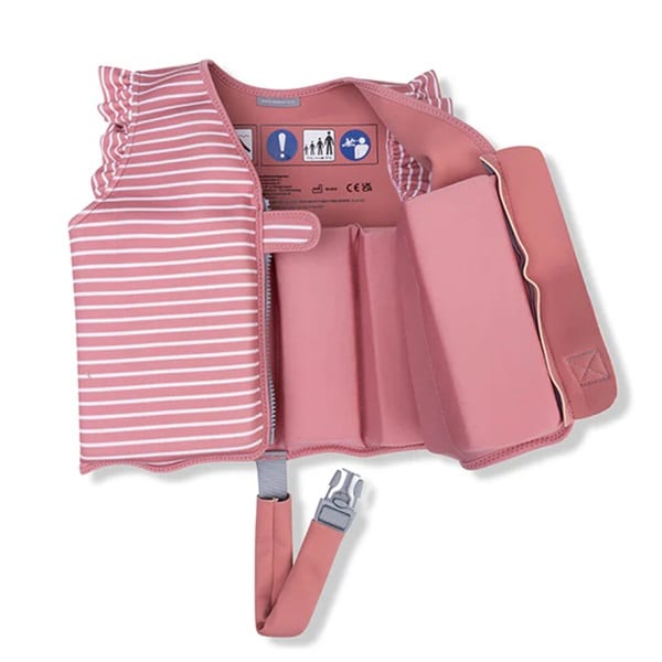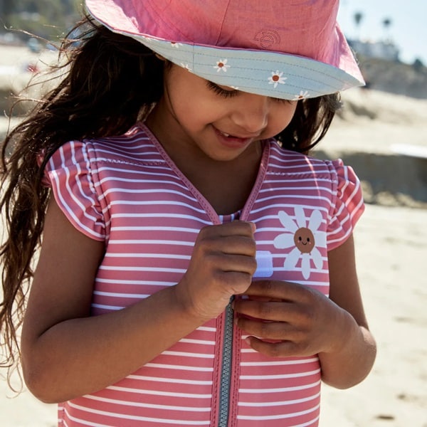Swim Essentials Daisy Flower simväst för barn är ett bra flythjälpmedel för både lek och simlärning för barn mellan 3-6 år (18-30 kg). Simvästen är gjord i mjuk och bekväm neopren med väl bibehållen rörelse för barnet i vattnet. Inuti bröstpanelerna finns skum som gör att västen flyter och ger barnet en bra position i vattnet. Simvästen stängs med blixtlås och kardborrespänne och har grenband så att västen hålls på plats.
