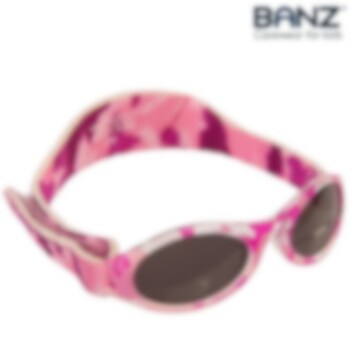 Banz solglasögon KidzBanz Pink Camo är bekväma och skyddande solglasögon för barn mellan 2 och 5 år. Solglasögonen är gjorda i slitstarkt och tåligt material och har 100 % certifierat UV-skydd mot både UV-A och UV-B strålning. Med mjukt och reglerbart nackband så sitter KidzBanz solglasögon stadigt på barnets huvud.