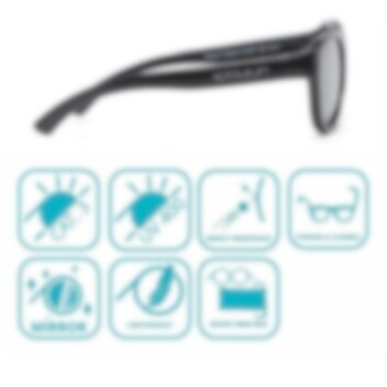 Koolsun Air Beluga Black är tåliga, snygga och skyddande solglasögon för barn i modern design och med bra passform. Koolsun solglasögon Air Phantom Black har pilotform och har tålig ram och skalmar i flexiblet material (TPE). Spegelglasen i Revo-teknik, som inte kan gå sönder, är gjorda i stark polycarbonat som ger 100 % UV-skydd mot både UV-A och UV-B och har högt motstånd mot repor. Alla Koolsun glasögon levereras med en förvaringspåse gjord i microfiber.