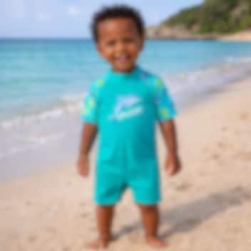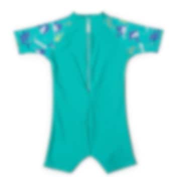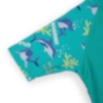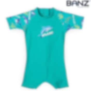 Banz Dolphine är en välgjord och skyddande UV-dräkt med 3/4 ärm för barn och baby gjord i gullig design. UV-dräkten har certificerat UV-skydd SPF 50+ och skyddar barnet mot solens farliga UV-strålar. Banz Dolphine är gjort i mjukt och smidigt material som torkar snabbt. På UV-dräktens baksida finns en insydd blixtlås (som inte skaver mot barnets rygg) som gör det lätt att ta på och av dräkten och för blöjbyten. Det mjuka materialet är tåligt och klor- och blekningsbeständigt. Banz UV-dräkt kan maskintvättas.