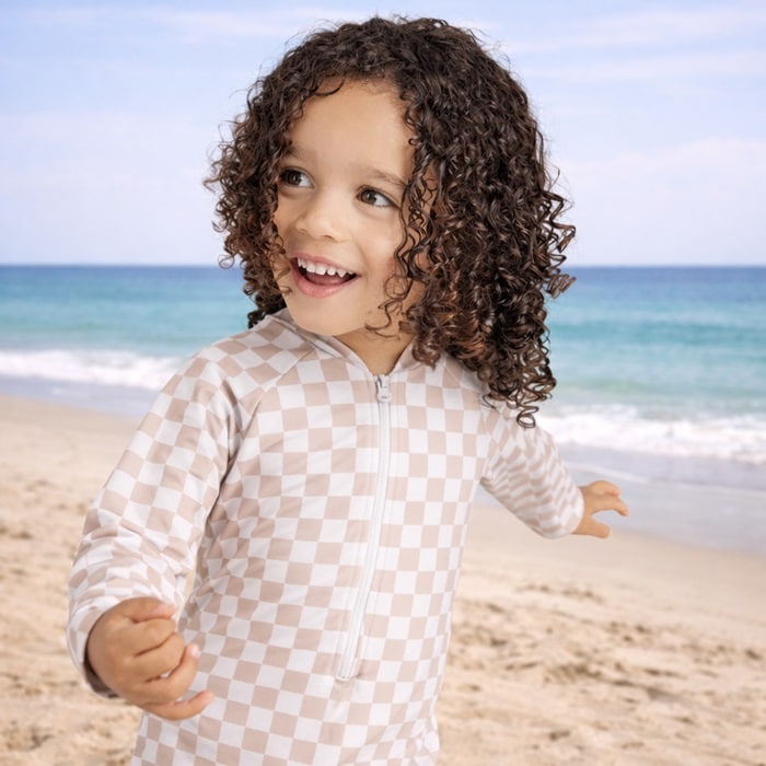 Swim Essentials Sand Check är en söt, bekävm och skyddande UV-dräkt för baby och små barn. UV-dräkten har långa ärmar och är gjord i mjukt och följsamt material med solskyddsfaktor SPF 50+. Swim Essentials Sand Check har blixtlås framtill och gjord i stretch, så att den enkelt går att ta på och av, även när den är blöt.