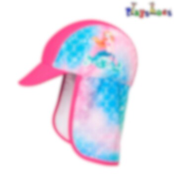 Tuff och bekväm solkeps för barn från Playshoes gjord i mjukt och skönt material. Playshoes Mermaid sohatt skyddar barnets ansikte och nack med ett tilltaget brätte och långt nackskydd. Solkepsen är gjord i Oeko-Tex certificerat material med solskyddsfaktor 80. Använd Playshoes solhatt för barn på badsemestern eller på sommarens soliga dagare på stranden hemmavid.