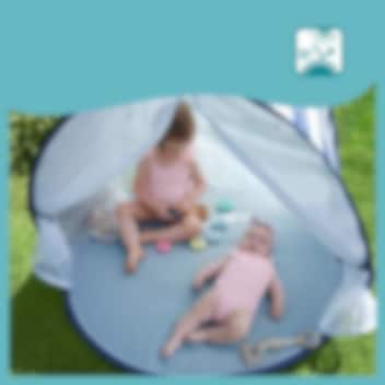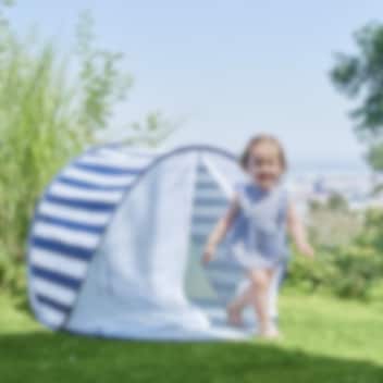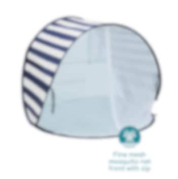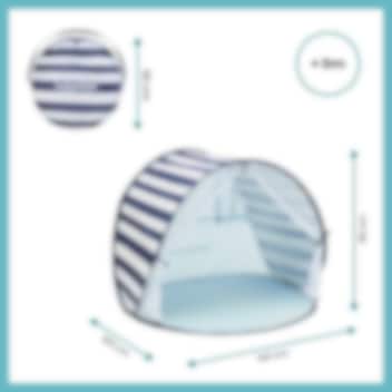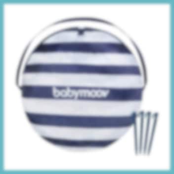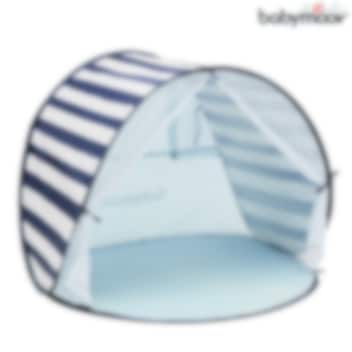 Babymoov Marinieri är ett stabilt och rymligt uv-tält som skyddar mot solens farliga uv-strålar. Strandtältet är enkelt att fälla upp (pop-up teknik) och ta ned. När tältet inte används så packas det i den medföljande transportväskan. Babymoov uv-tält har myggnät som stängs med blixtlås, ventilationsfönster och är utrustat med fästöglor och tältpinnar för blåsiga dagar. Tältet har UV-skydd SPF 50+ som ger skön skugga på stranden och fukt- och vattenskyddandde botten.
