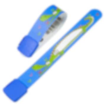 ID-armband för barn gjort i mjuk plast och rolig design. Plats att skriva ditt telefonnummer och annan viktig information. Smart och tryggt på resa när risken att komma ifrån varandra ökar.