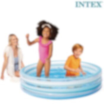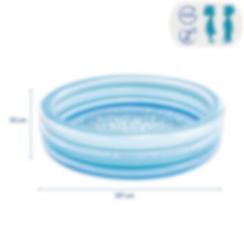 Intex Blue Bliss är en stabil och uppblåsbar barnbassäng med plats för plask och vattenbus. Barnpoolen är 147 cm i diameter och har två separata luftkamrar med säkerhetsventiler, är säkerhetstestad och gjord i hållbar vinyl.