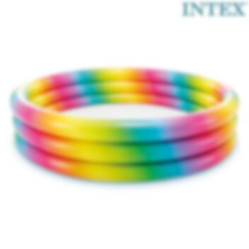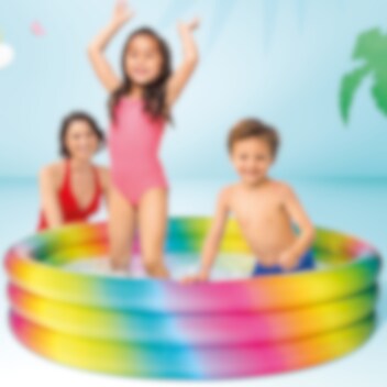Intex Multicolour är en härlig uppblåsbar barnbassäng med plats för plask och vattenbus. Barnpoolen är 147 cm i diameter och har två separata luftkamrar med säkerhetsventiler, är säkerhetstestad och gjord i hållbar vinyl.