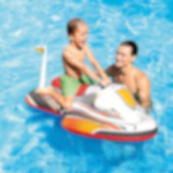 Intex Wave Rider Red är en uppblåsbar vattenskoter gjort i tuff och stabil design. Skotern är väl tilltaget i storlek (117 x 77 cm) och utrustat med ett praktiskt handtag att hålla fast i. Skotern är gjord i kraftig vinyl som är motståndskraftig både mot sol och saltvatten. Tänkt för barn ca 3-6 år.