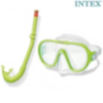 Funktionellt och roligt snorkelset för barn som innehåller cyklop och snorkel i barnstorlek. Intex Adventurer Green är tänkt för barn från cirka 8 år och passar perfekt för blöta dagar både i poolen och havet. Både cyklop och snorkel är gjorda i storlek för att passa ett barns ansikte och mun. Masken är gjord i antiallergisk material i latex-fri PU plast. Snorkeln har termoplastmunstycke, konturform, och skydd mot vattenstänk. Snorkeln kan fastgöras i masken.