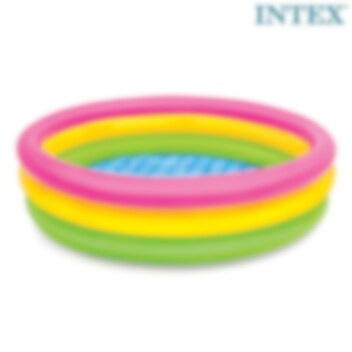 Intex Rainbow är en härlig uppblåsbar barnbassäng med plats för plask och vattenbus. Barnpoolen är 114 cm i diameter och har två separata luftkamrar med säkerhetsventiler, är säkerhetstestad och gjord i hållbar vinyl.